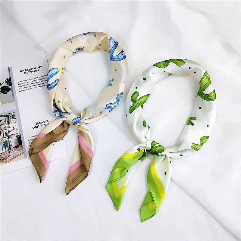 Новый Шелковый шарф 70*70 модный платок с принтом в горошек С КАКТУСОМ Женская шаль атласные маленькие квадраты головной мешок декоративные ш...