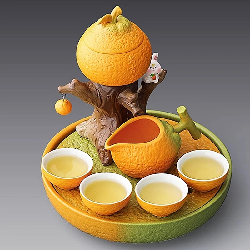 Новый апельсиновый чайный сервиз кунг-фу для дома. Ленивый автоматический чайник, специально разработанный для приготовления чая на новоселье в новом доме.