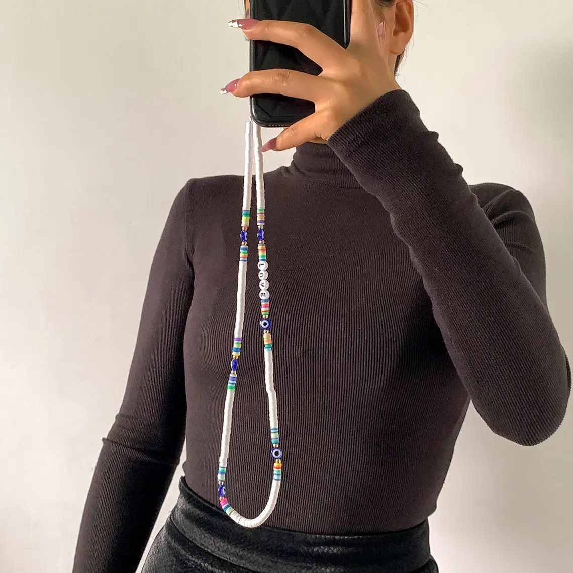 Новый белый мягкий керамический шнурок с бусинами, романтичная цепочка, шнурок с дьявольским глазом для девочек, ремешок для телефона и оже...