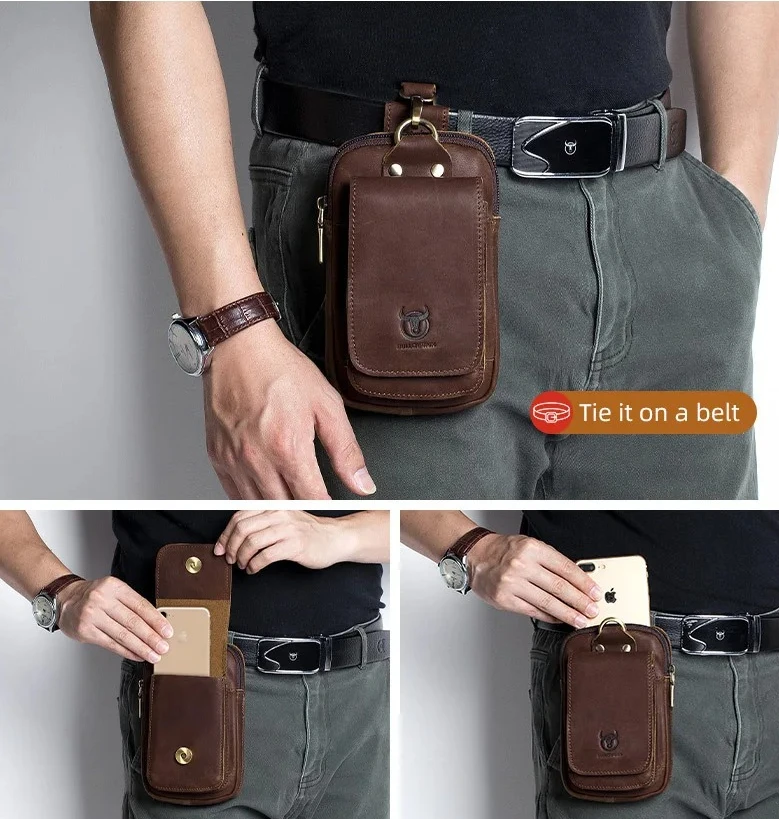 Новый кожаный ремень с масляным воском, 5-дюймовый подвесной кошелек для хранения мобильного телефона, многофункциональная поясная сумка с чехлом, магнитная пряжка