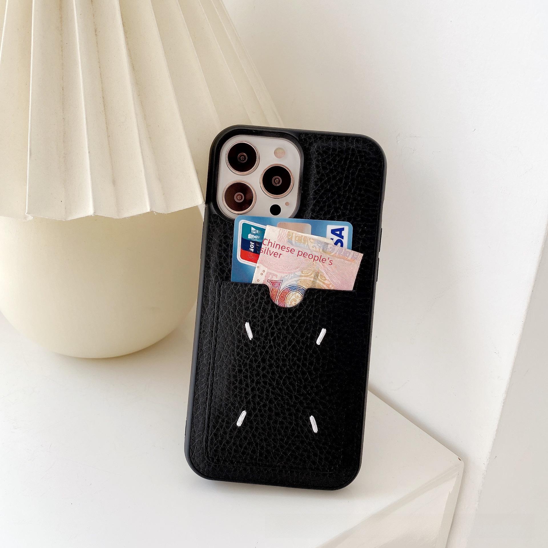 «Новый кожаный чехол Margiela с отделением для карт для телефона 13 Pro Max — прошитая вручную защита четырех углов» 14 Plus чёрный