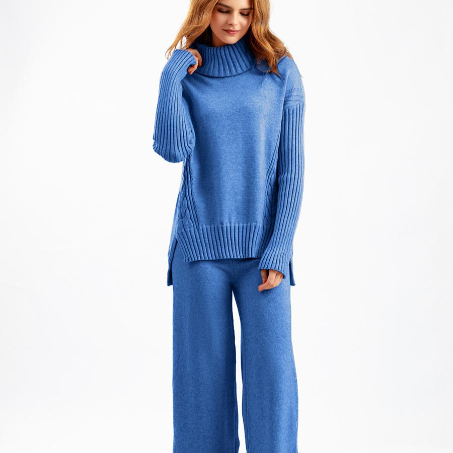 Новый комплект из двух предметов: свитер с широким воротом и широкими брюками на осень/зиму One size розовый