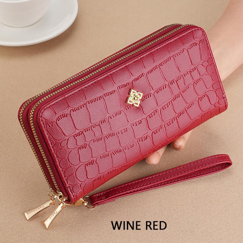 Новый кошелек для девочек, длинный кошелек с двойной молнией, модный, большой емкости, изысканный кошелек, клатч красный
