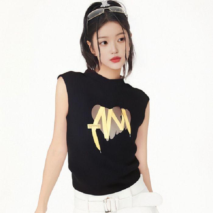 Новый летний стиль женского вязаного топа-халтера с I-образным спортивным топом без рукавов для ношения как внутри, так и снаружи one size чёрный