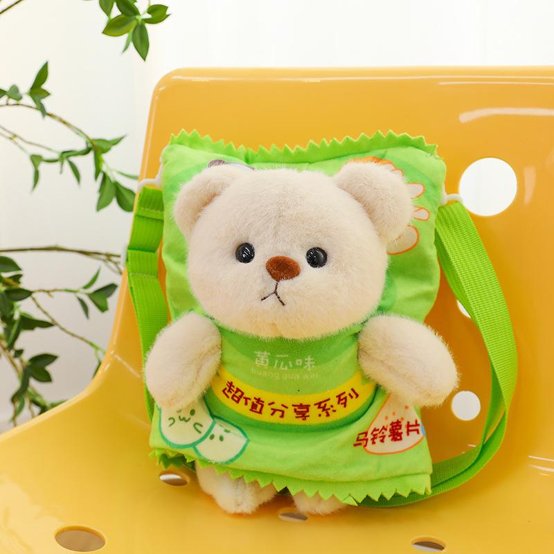 Новый милый рюкзак в виде медведя с картофельными чипсами, плюшевая кукла, сумка через плечо, кукла, подарок на день рождения, детская сумка для закусок 20x25cm/0.19kg зелёный