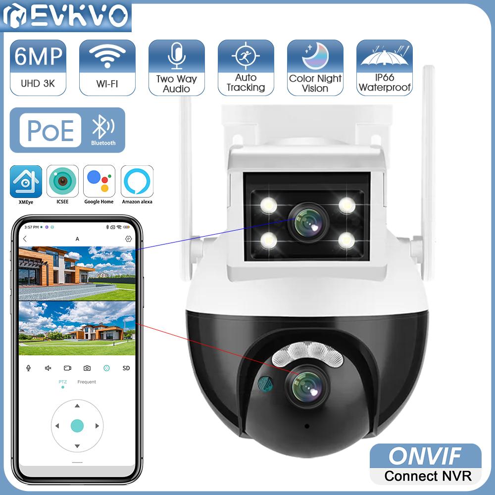 МЦСЕЕ 6MP 3K (2304*2592) Камера PTZ-наблюдения с двумя объективами, POE и отслеживанием движения, AI, обнаружение людей, NVR, уличная водонепроницаемая камера видеонаблюдения