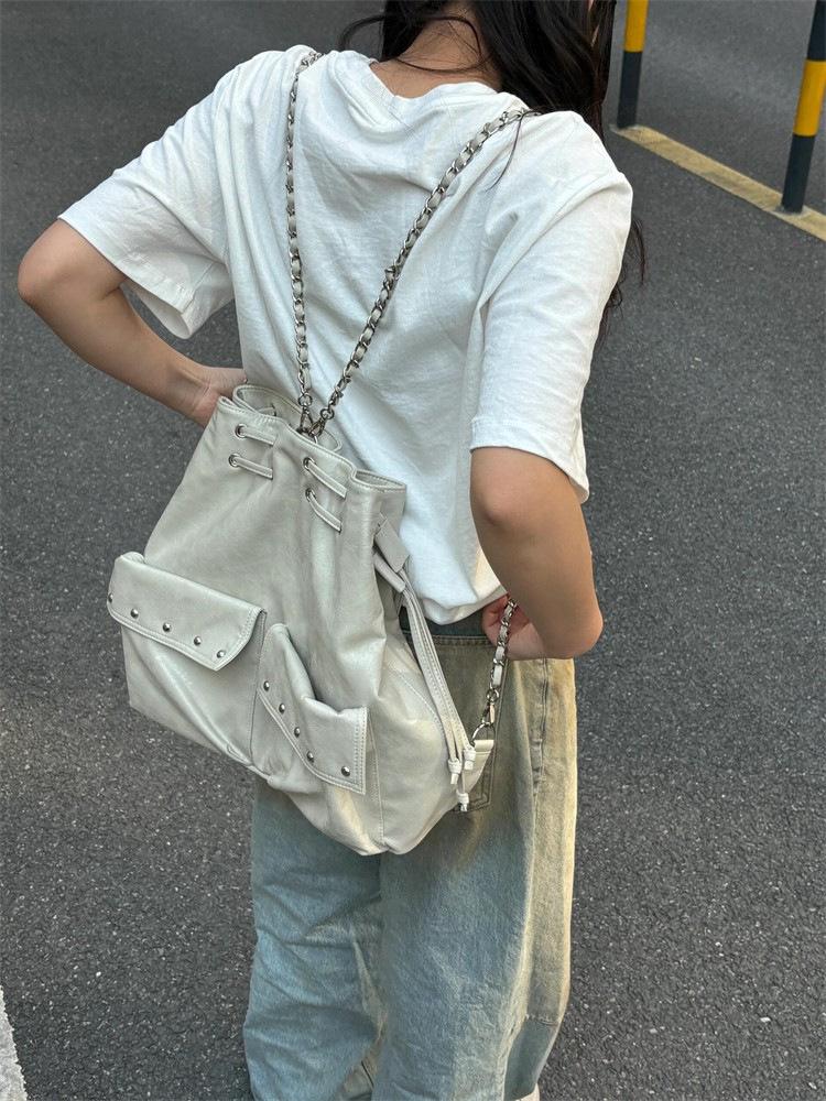 Новый нишевый рюкзак-ведро на шнурке-цепочке большой вместимости, одноплечевой, через плечо, с заклепками