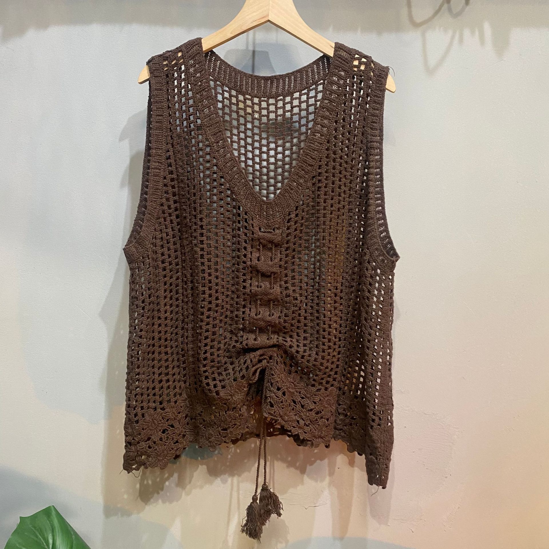 Новый полый жилет свободный ретро внешний повседневный универсальный жилет на шнурке иностранная универсальная модель One size темно-коричневого