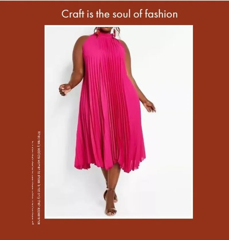 WEPBEL XL-5XL Women Sleeveless Stand Collar Evening Party Dress Elegant Holiday Pleated Long Dresses Kleid