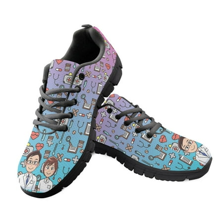 Summer Lace Up Sport Jogging Running Shoes For Women Nurse Walk Casual Shoes Doctor Print Mesh Ladies Sneakers Womens Flats