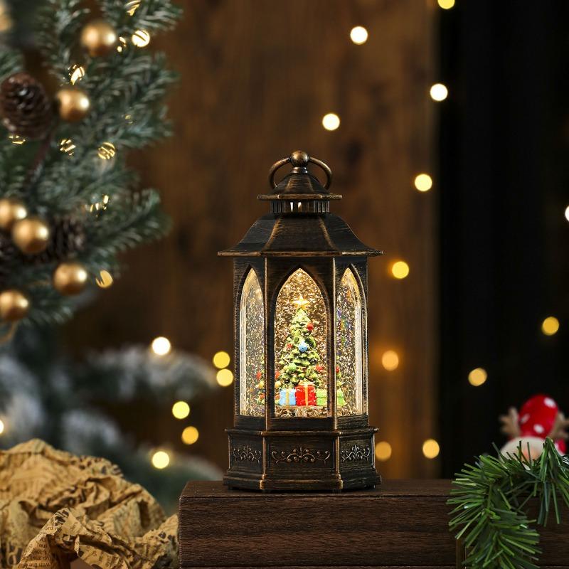 Новый светящийся вращающийся снежинка шестигранный водяной масляный светильник музыкальная шкатулка украшение, рождественский подарок украшение фонарь в виде лошади Non-rotating tree
