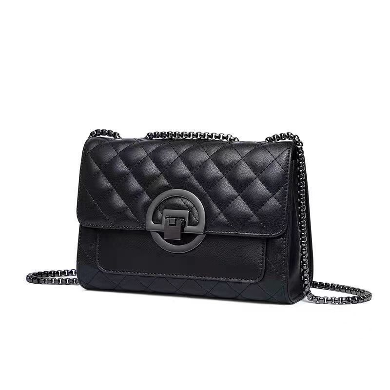 Новый стиль Воловья кожа Весенне-летний стиль Ромбовидная цепочка Маленькая квадратная сумка Сумка через плечо для женщин чёрный