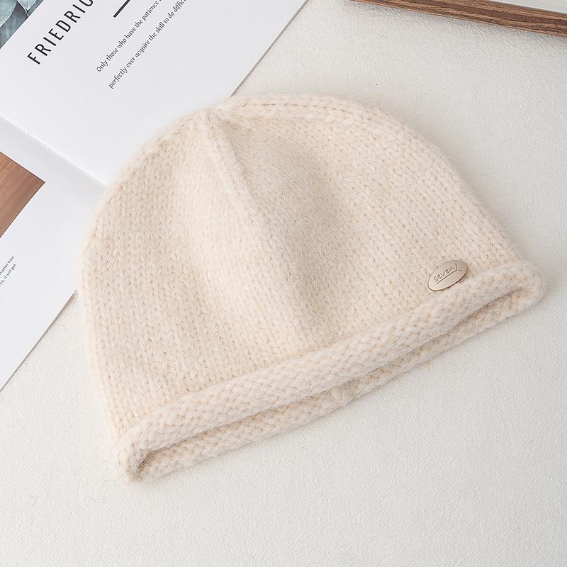 Новый стиль Осень/Зима Шляпа Женская Шляпа Денди Металлическое украшение Шапки Бини для Девочки Теплая Уличная Вязаная Шапка 56cm-60cm бежевый