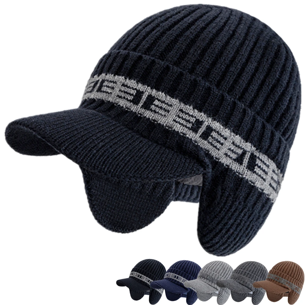 Новый стиль, плюшевая зимняя шапка на меховой подкладке с ушками, модная шапка-бини, мужская уличная теплая шапка, зимняя шапка, теплый подарок для отца
