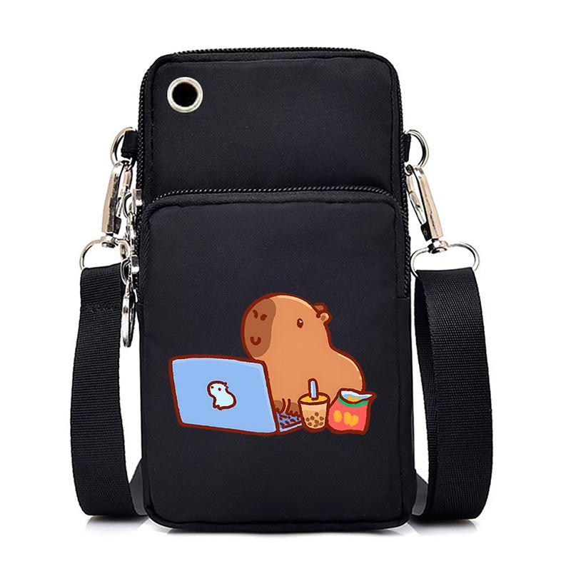 Новый тренд персонализированной мультяшной печати черная косая сумка через плечо сумка для мобильного телефона легкая сумка для переноски для мелочи No Spec
