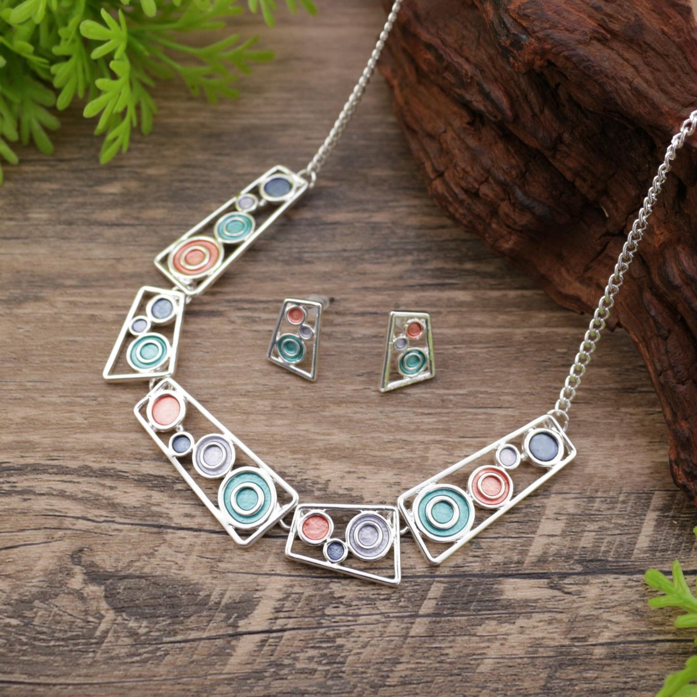 Новый цветной набор сережек-пусет с полыми геометрическими круглыми элементами и ожерелья, женское преувеличенное квадратное ожерелье.