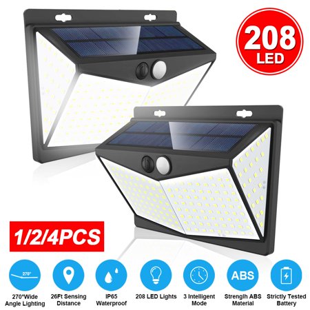 LED Wall Lights Solar Outdoor 208 LED Outdoor Motion Sensor Light Wireless LED Wall Lamp pack of 2