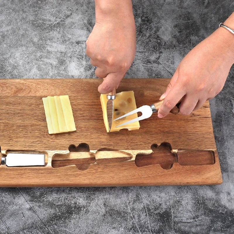 Ножи для сыра, столовые приборы с деревянной ручкой, нержавеющая сталь, слайсер для сыра, резак, мини нож, шпатель для масла, вилка, инструменты для готовки