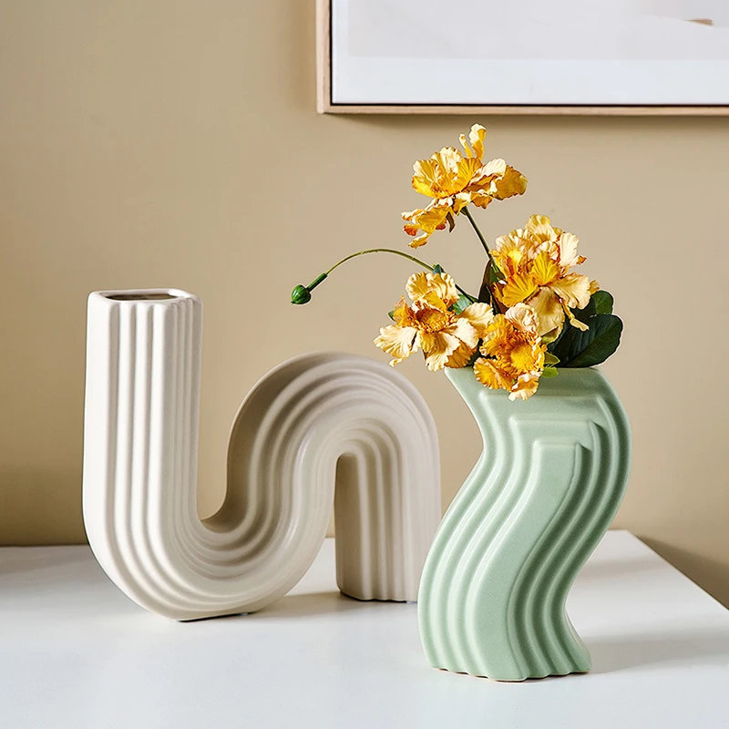 Нордическая Современная Минималистичная Геометрическая керамическая ваза, настольное украшение, книжный шкаф, винный шкаф, цветочный горш...
