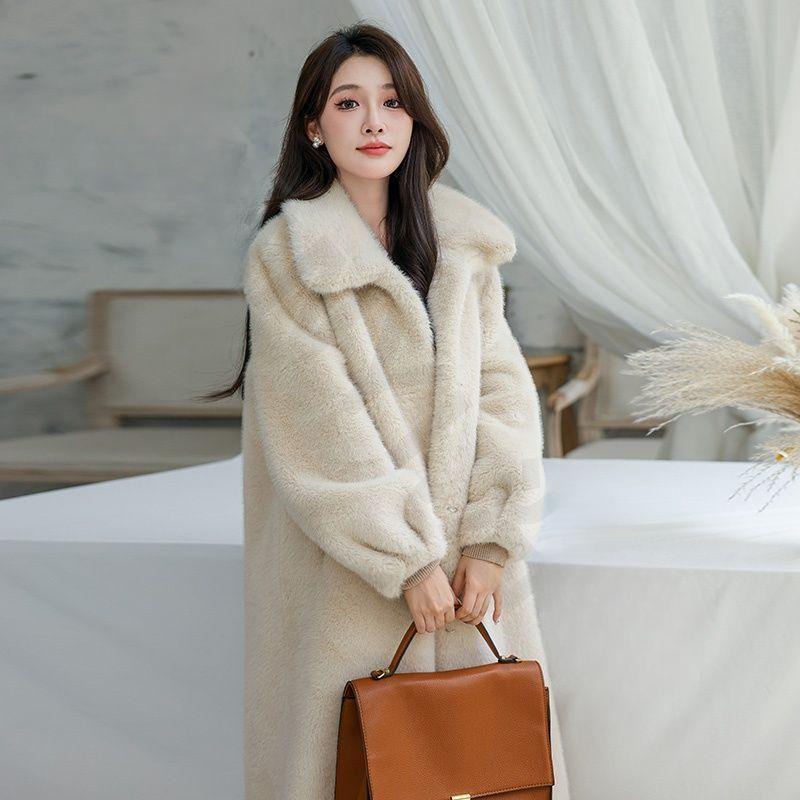 Норковая куртка женская зимняя бархатная утолщенная длинная с квадратным воротником имитация норки цельная шуба женская L