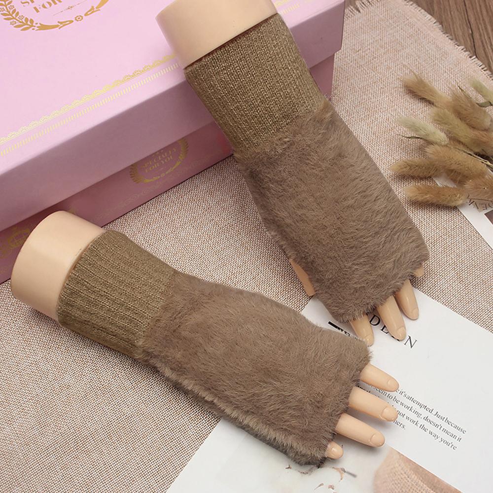Норковый флис зимние перчатки с полупальцами женские теплые роскошные однотонные белые плюшевые вязаные перчатки без пальцев пишущие мягкие варежки на запястье M