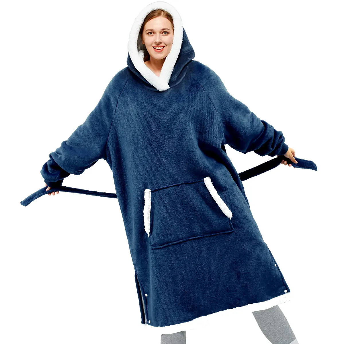 Носимые одеяла с рукавами и карманами зимняя теплая толстовка свитшот для взрослых одеяло большого размера с капюшоном для телевизора кров...