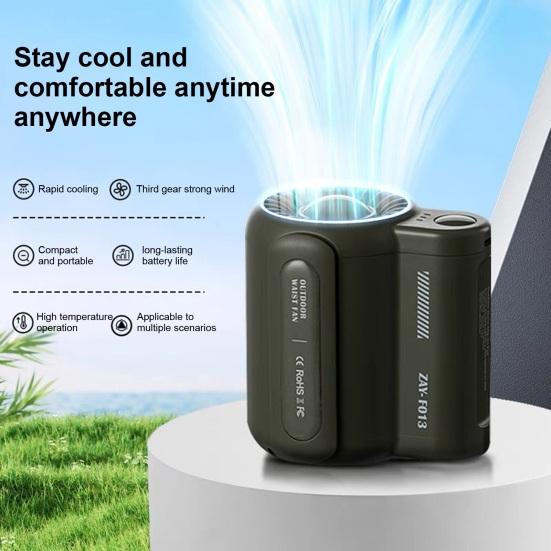 Носимый персональный прикрепляемый вентилятор с 3 настройками скорости Мощный воздушный поток Низкий уровень шума Перезаряжаемый мини-поясной вентилятор с USB-портом Вентилятор с зажимом для ремня белый