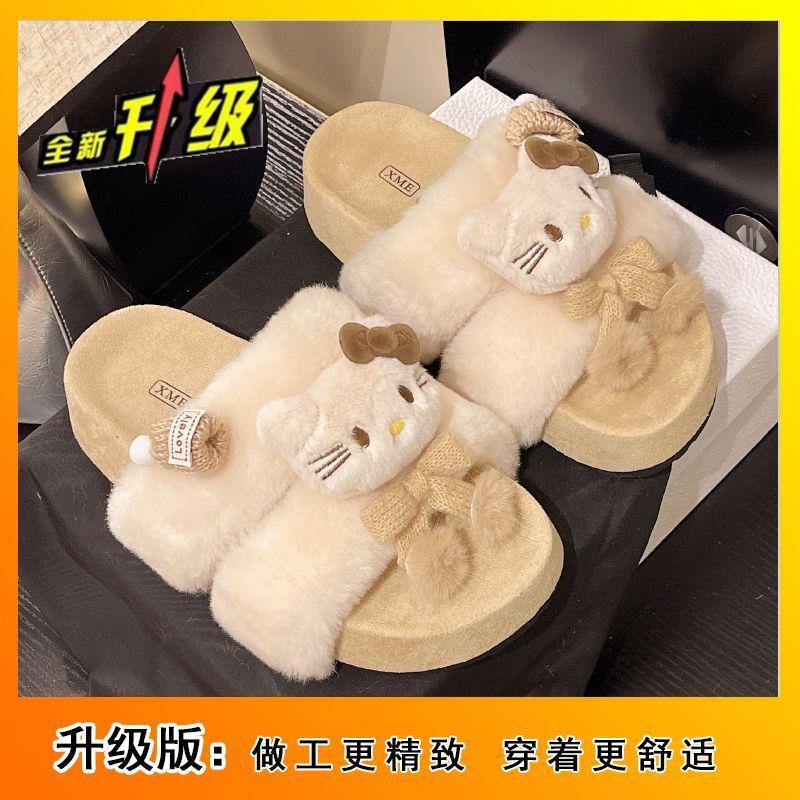 Носить с юбкой милые увеличивающие рост однословные хлопковые мопы 2025 новая осень интернет-знаменитость супер огонь толстая подошва пушистые тапочки женщины 40