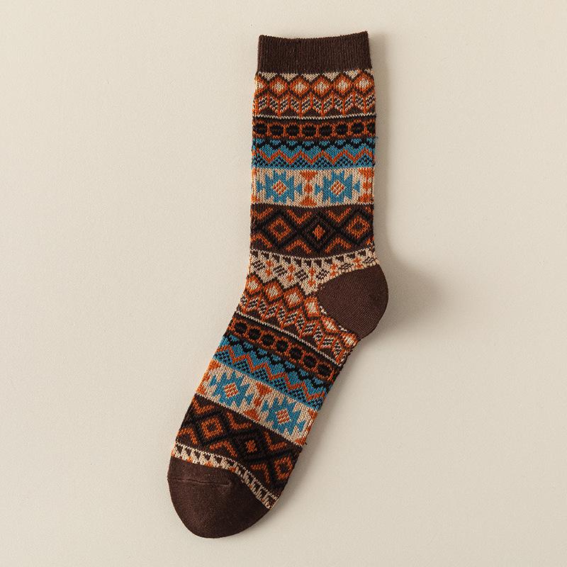 Носки в этническом стиле для женщин на весну и осень, ретро средней высоты, зимние теплые и повседневные хлопковые носки, которые делают вас стройнее 1 pair темный кофе