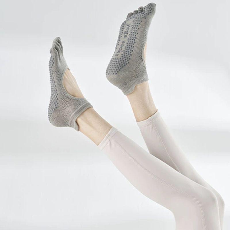Носки для йоги Нескользящие Профессиональные Женские Носки с пальцами Носки для фитнес-зала Взрослые Танцевальные Нескользящие Носки Носки для пилатеса Noble Gray