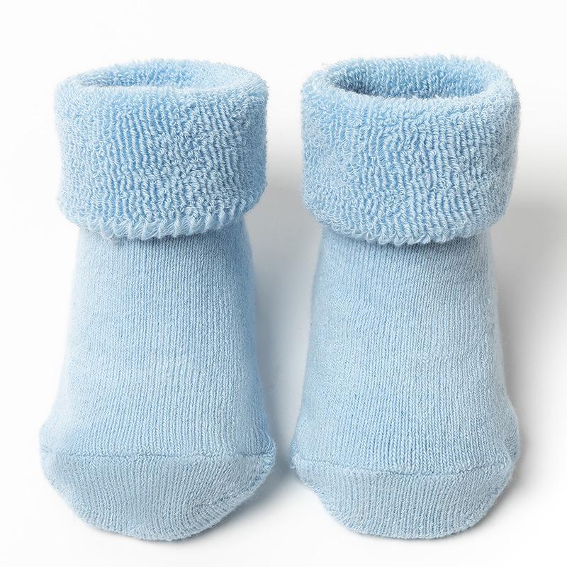 Носки для новорожденных, толстые теплые носки-тапочки, нескользящие носки для малышей, однотонные детские махровые чулочно-носочные изделия средней длины S синий