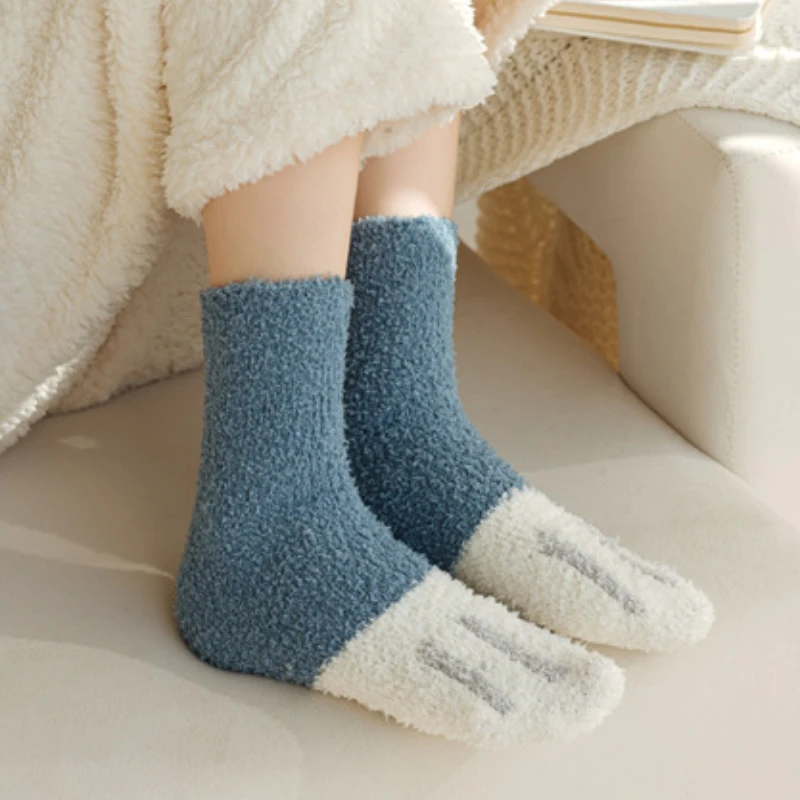 Носки флисовые 1 пара, женские пушистые носки-трубы с мультяшными когтями, толстые теплые домашние носки для сна, чулочно-носочные изделия, Осень-зима