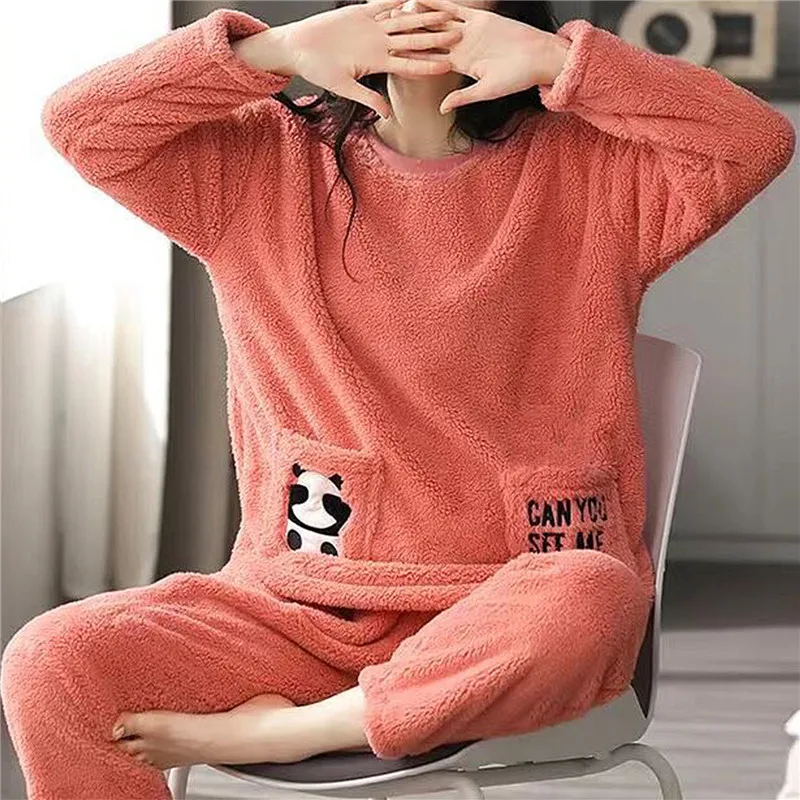 Ночная одежда с мультяшным медведем, пижама, одежда для взрослых и девушек, кораллового цвета, домашняя кашемировая зимняя фланелевая тепла...
