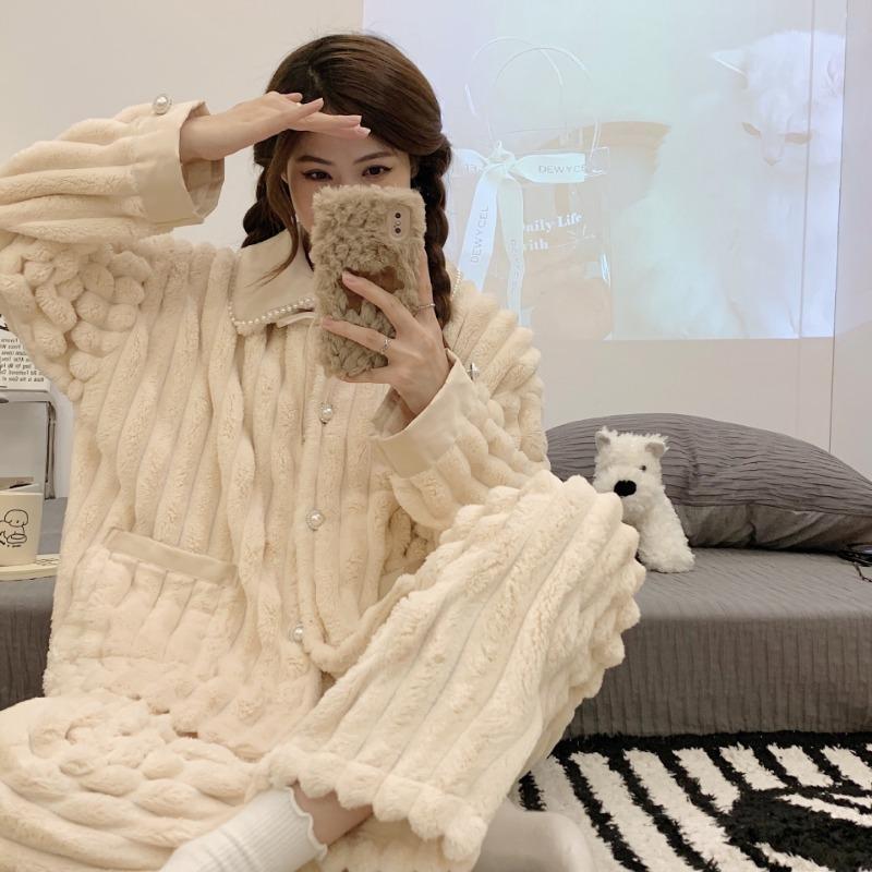 Ночная рубашка женская осенне-зимняя, коралловая, бархатная, утепленная бархатом, удобная, свободная, на улице длинные брюки, зимний теплый костюм с длинными рукавами и длинными рукавами L