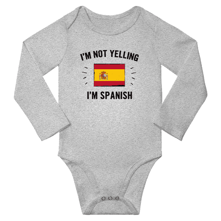 I m Not Yelling I m Spanish! Baby Long Sleeve Bodysuit Unisex Gifts (Gray 12 Months)