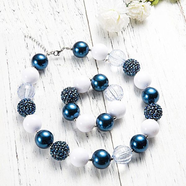 girl blue necklace + bracelet set ins kids chunky bubblegum bead 2pcs set children diy jewelry sets, Red;brown
