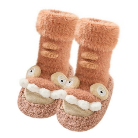 Utoimkio Toddler Baby Sock Shoes 18 Months Toddler Boys Girls Solid Color Cartoon Dog Socks Keep Warm Plush Kids Soft Non-slip Indoor Toddler Shoes Socks