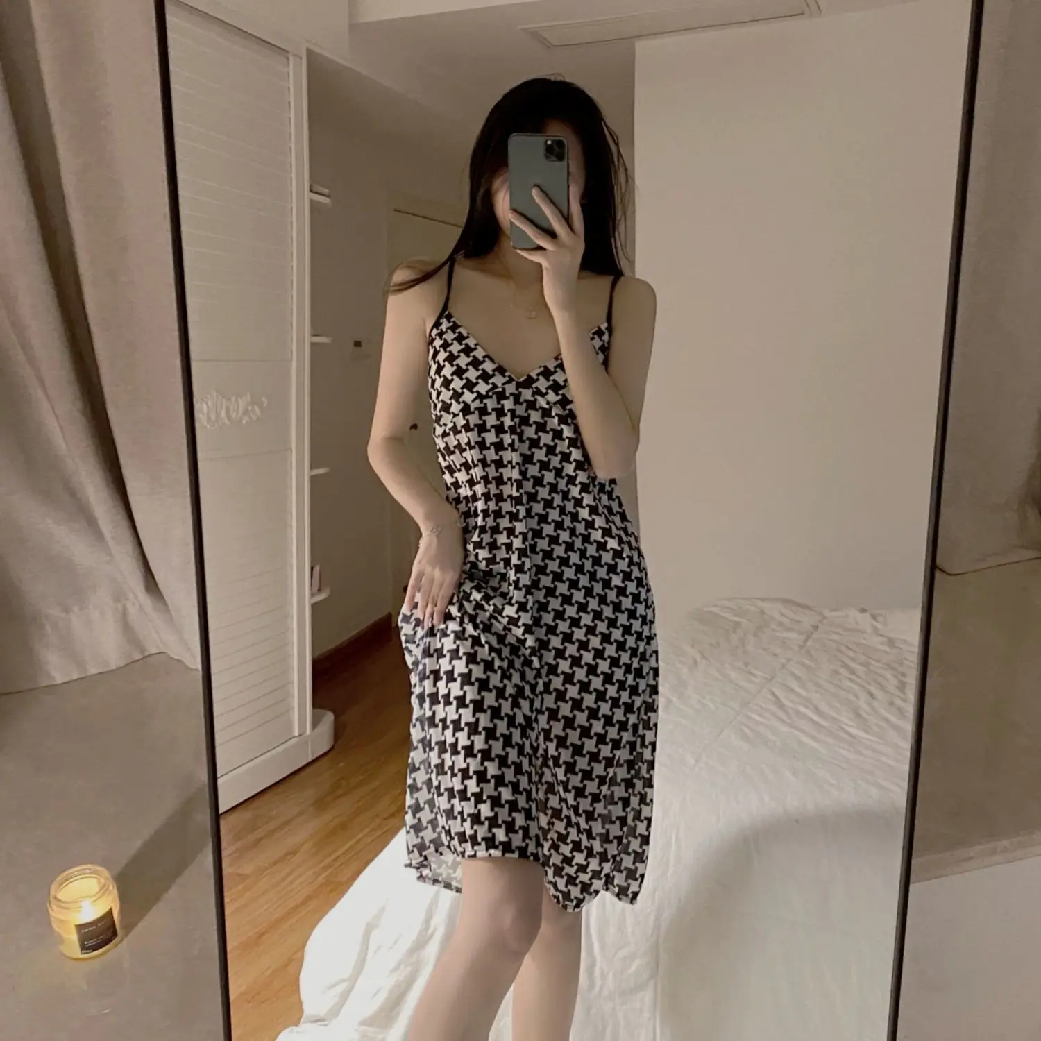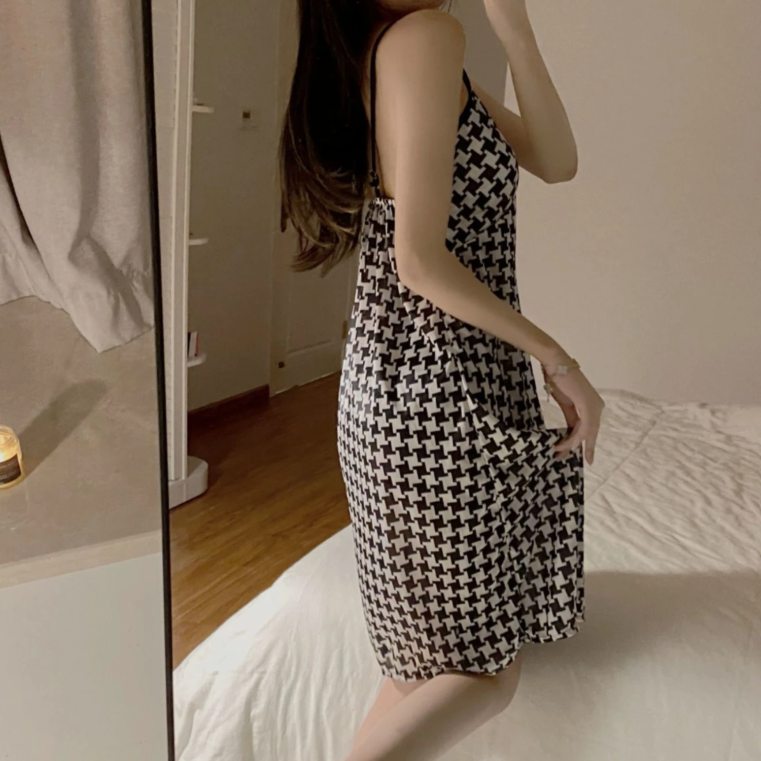 Ночные рубашки женская повседневная домашняя мягкая Пижама для спальни модная Милая тонкая летняя в Корейском стиле Сексуальная простая женская новая милая клетчатая