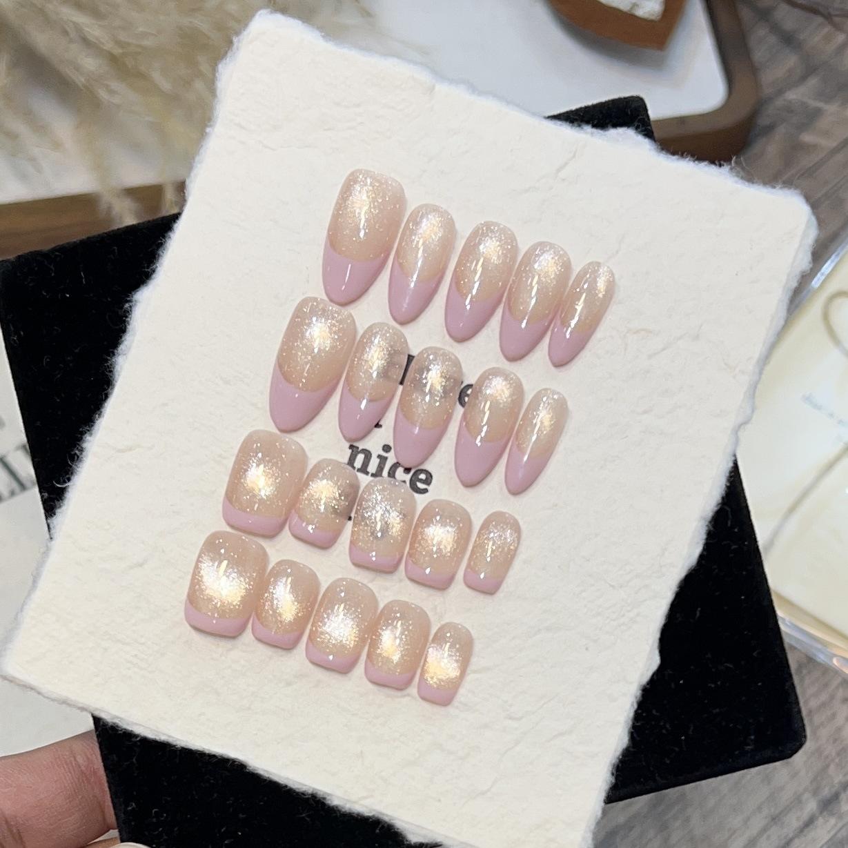 Ношение брони Ручная работа Сухая лампочка Кошачий глаз Простой французский темпераментный стиль Маникюр Съемная накладная пластина для ногтей Large L