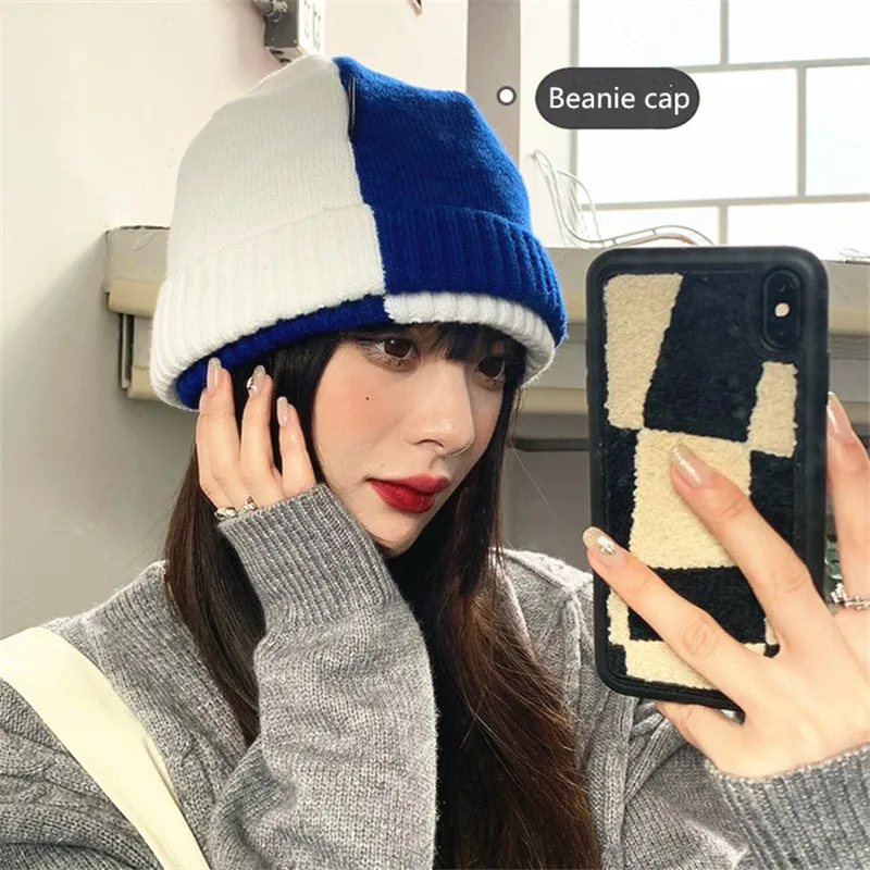 Облегающая шапка для женщин, новая зимняя плотная теплая вязаная шапка, шапочки в стиле хип-хоп, шапки, шапки в стиле пэчворк, шапка для путеш...