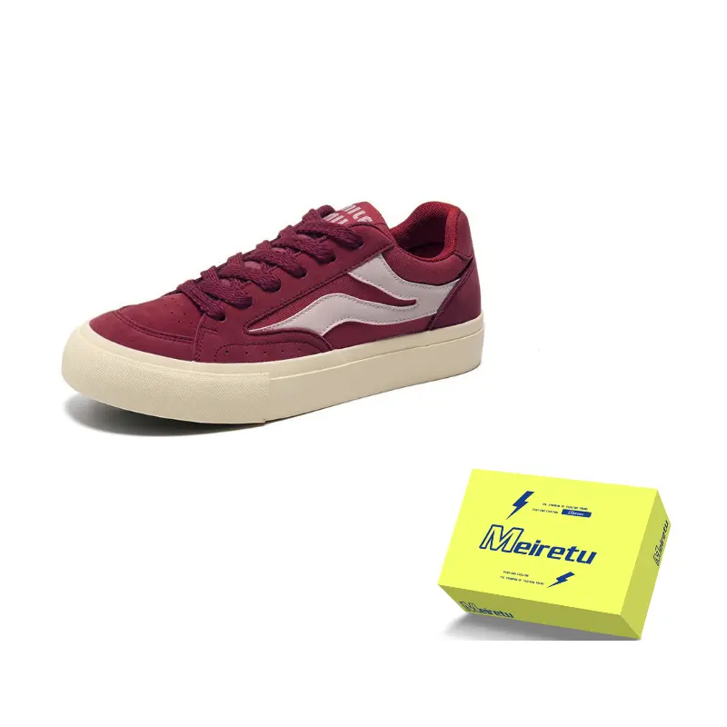 Meiretu Мужские устойчивые к истиранию низкие скейтерские кроссовки Burgundy, цвет Burgundy