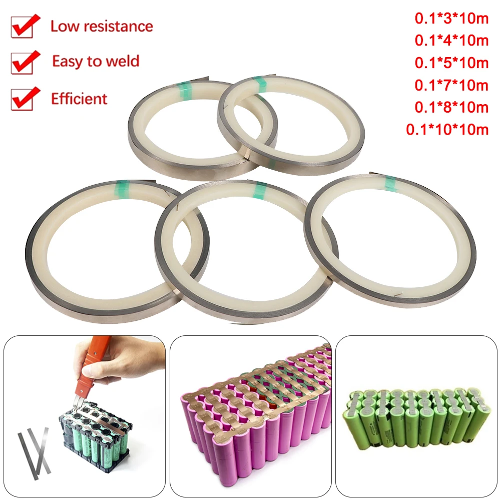 Никелевая лента для горячего сварщика, 10 м, 0,1 мм, Никелированная Стальная лента с никелевым покрытием и аккумулятором 18650, аксессуары для то...