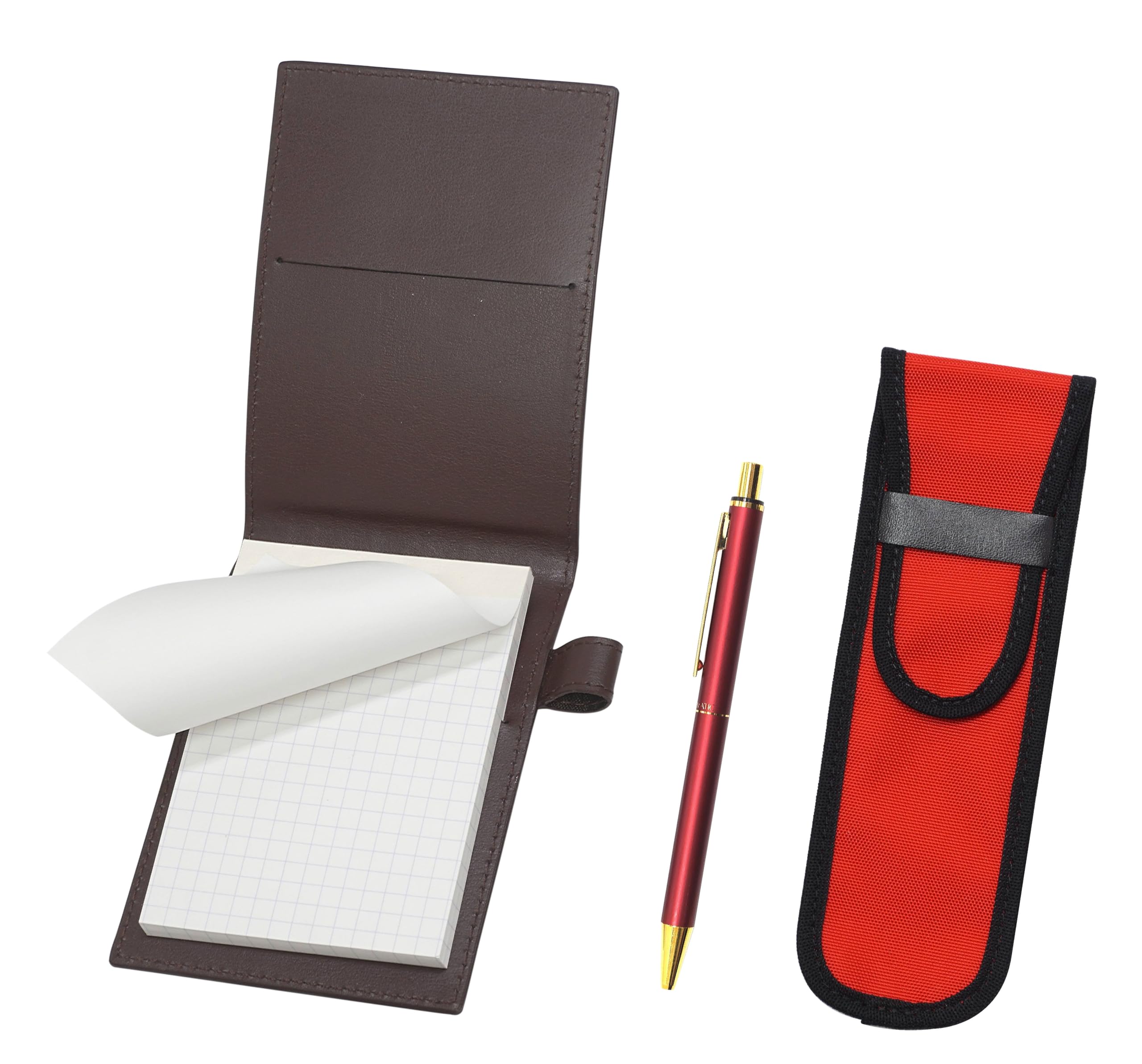 Обложка для мини-блокнота из переработанной коровьей кожи коричневого цвета с тканевым пеналом красного цвета NQ25 стандартного размера, металлическая шариковая ручка с прямым стуком и двойным анодированным кольцом