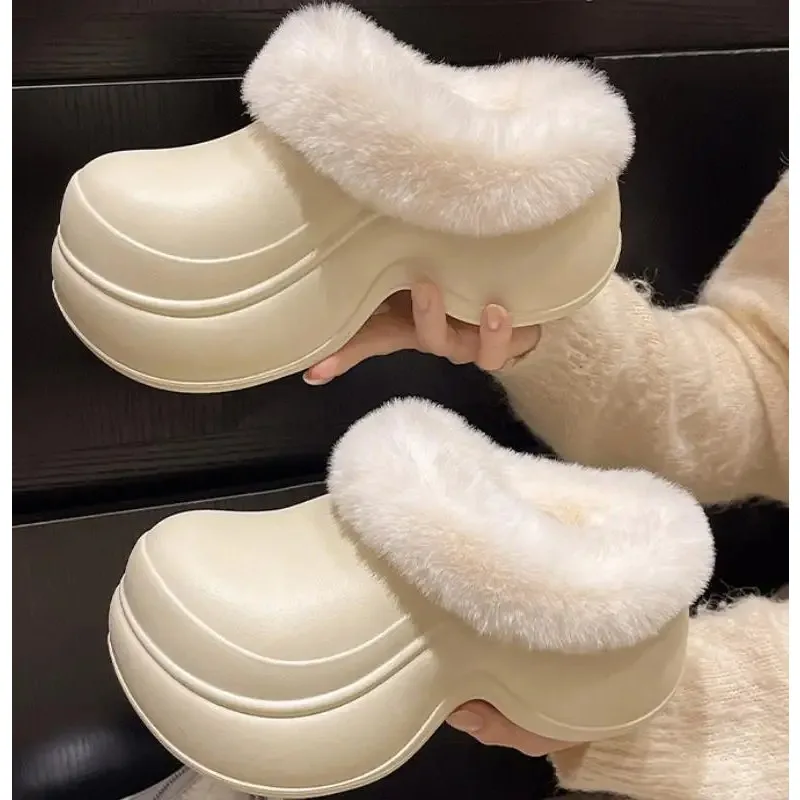 Women's Platform Slippers Fashion Concise Waterproof EVA Female Thick Sole Slipper Winter Fur Warm Wedges Slippers Zapatos Mujer