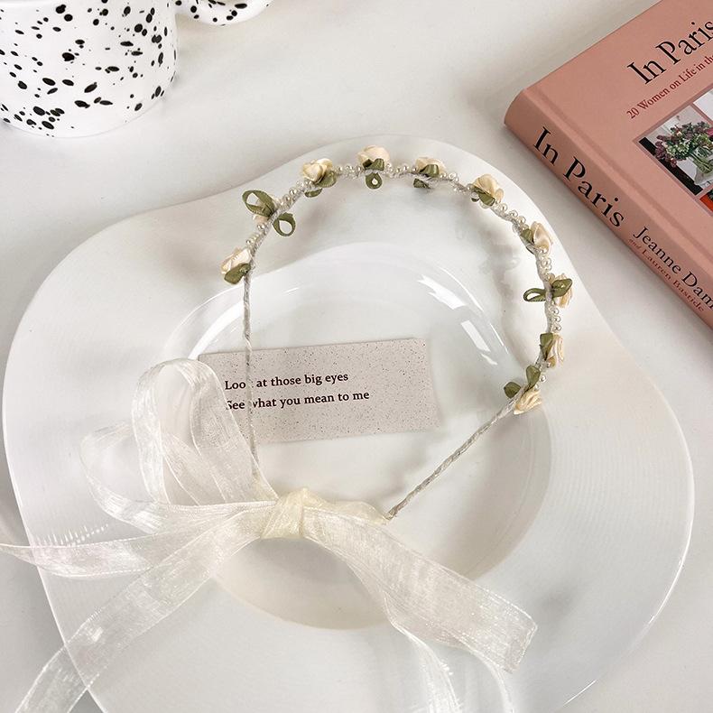 Обруч для волос с цветком, женская повязка для волос, одна система, пояс, летняя фея Мори, завязанные растяжки, плетеная лента, аксессуары для волос