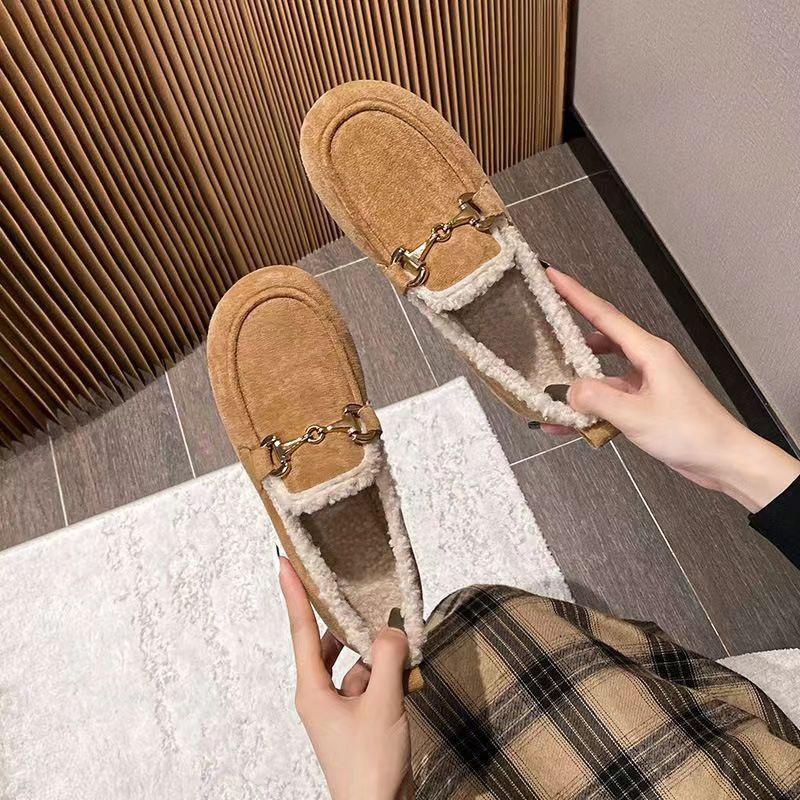 Обувь Мао Мао женская зимняя ретро на плоской подошве с мягкой подошвой на одной педали плюшевая теплая хлопковая обувь носить лофер бини обувь 40