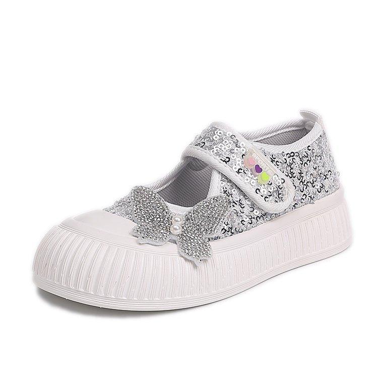 Обувь для девочек весна 2025 новая детская модная спортивная парусиновая обувь с бантом для девочек обувь принцессы обувь на платформе для детей среднего и старшего возраста 36