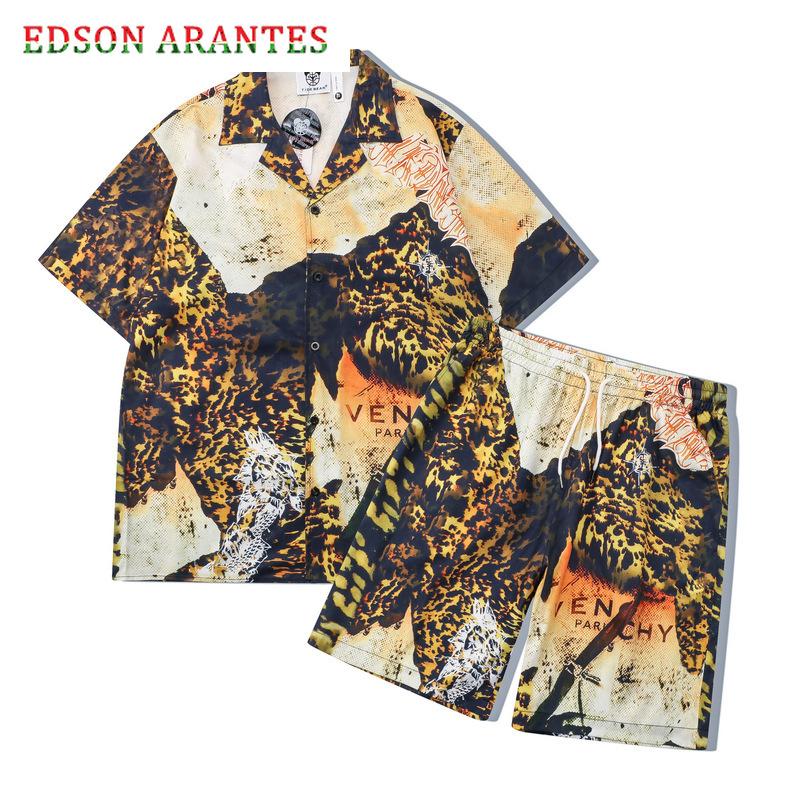 Men's Tracksuits EDSON ARANTES Brand Mens 2 Piece Hawaiian Set 2022 Summer Street Hip Hop 3d Printed Beach Casual Shirt Cardigan Shorts Suit, Gray