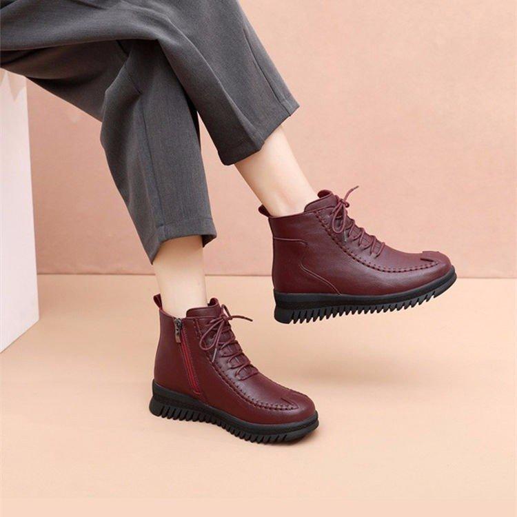 Обувь зимняя теплая бархатная хлопковая обувь для мам, женская обувь среднего возраста на плоской подошве, нескользящая женская хлопковая обувь, короткие ботинки для женщин, пожилая кожаная обувь 41