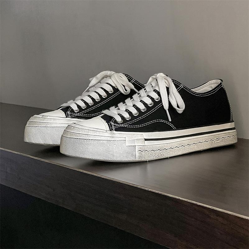 Обувь мужская новая трендовая нишевая японская ретро универсальная летняя с большой головой старая вулканизированная обувь низкий верх с увеличением роста парусиновая обувь 39 чёрный